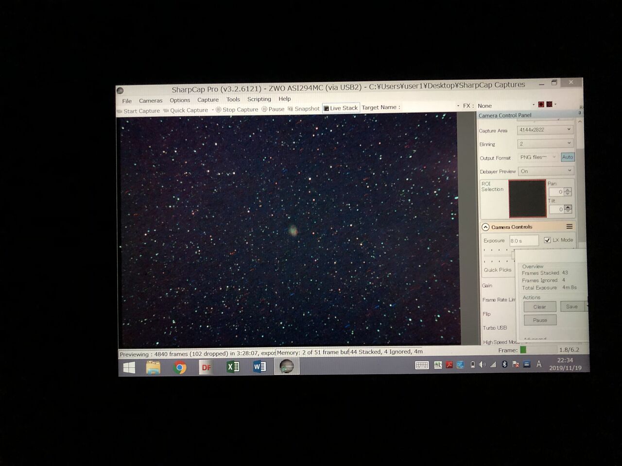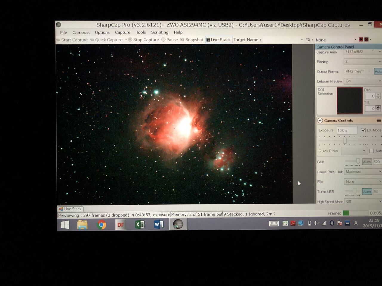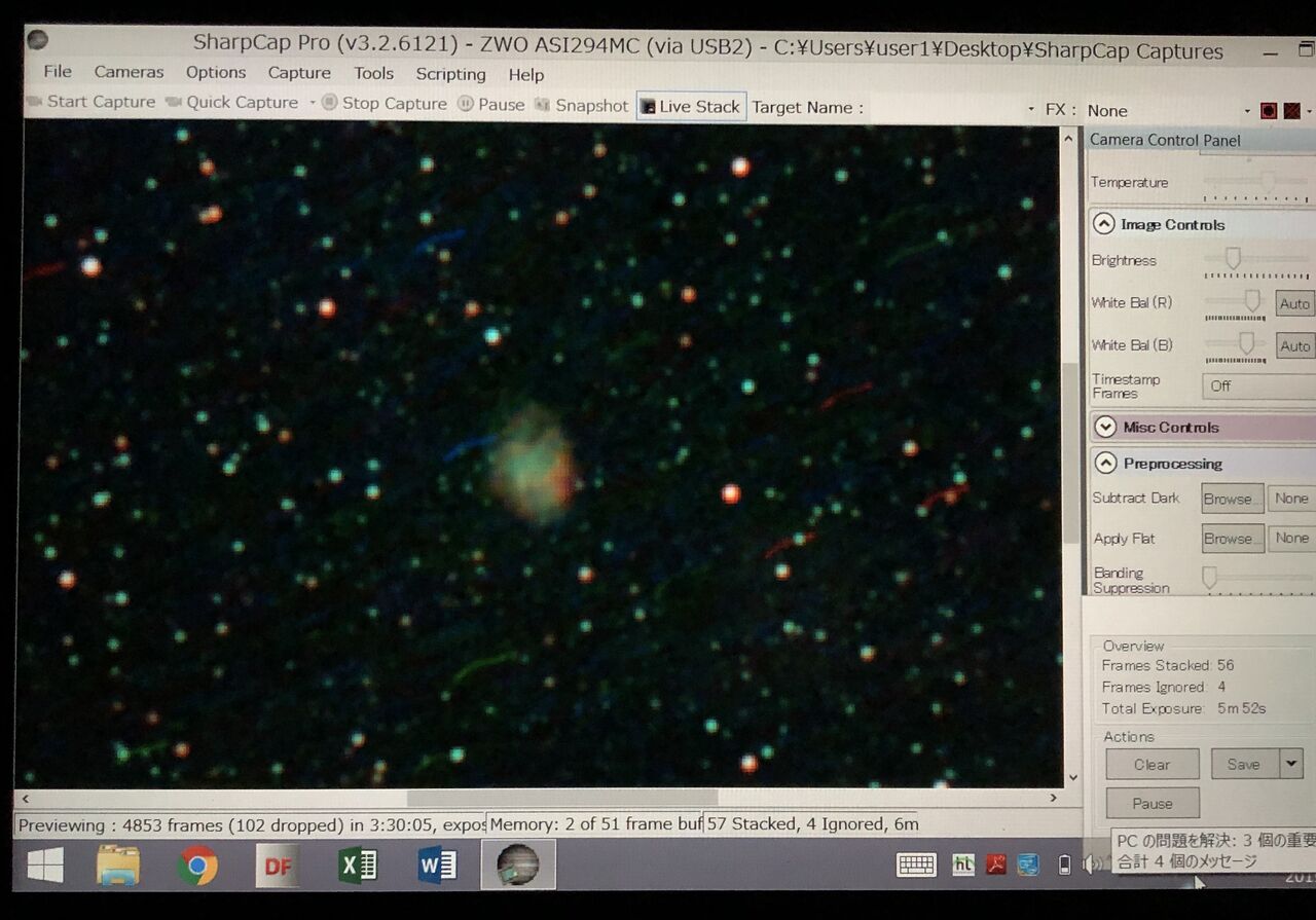 ここで、空が比較的良い(といっても限界等級3等+? くらい)ので思い切って16秒まで露出時間をのばしてM42に向けてみますと・・・・