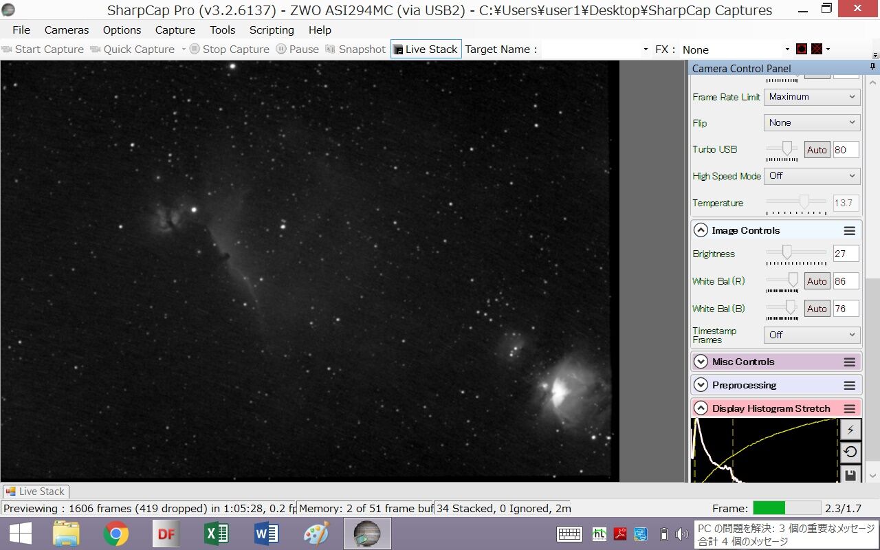 特に7nmの方は16秒を93枚もスタックしてあるので、20分ぐらい放っておいた結果です。とにかく待ち時間が長い・・・もともと「時短」のためにF2.8を投入したのだけれどこれじゃ意味ないです。いや、本来はもっと時間がかかるものがF2.8だから16秒で済んだ、と前向きに考えるべきでしょうか・・・・デュアル・ナローバンド使用ではもっと露出時間短くなると信じているのですが・・・