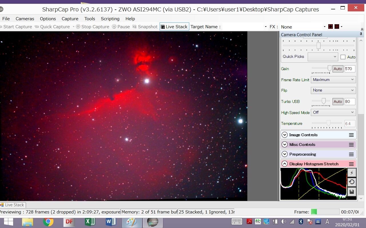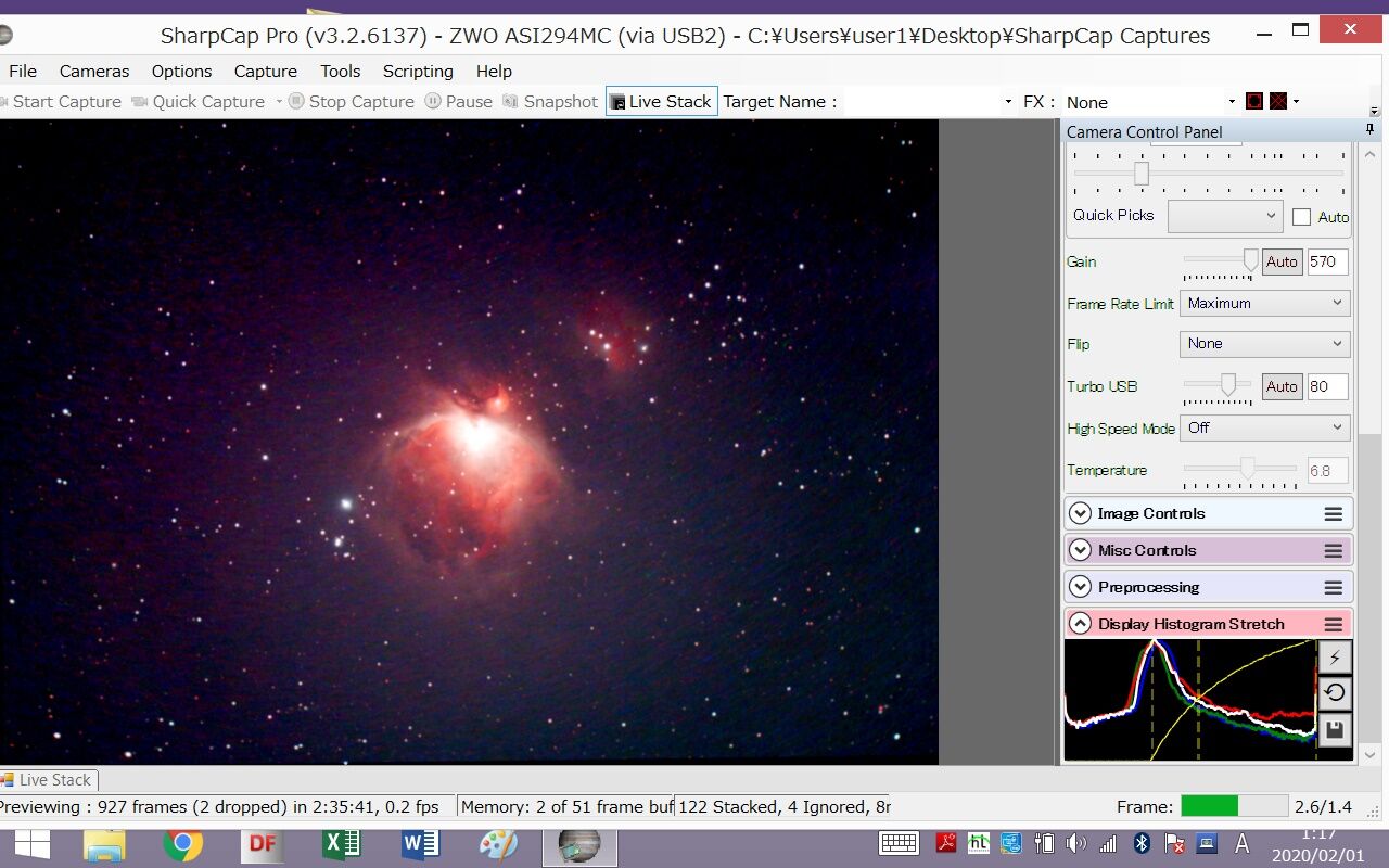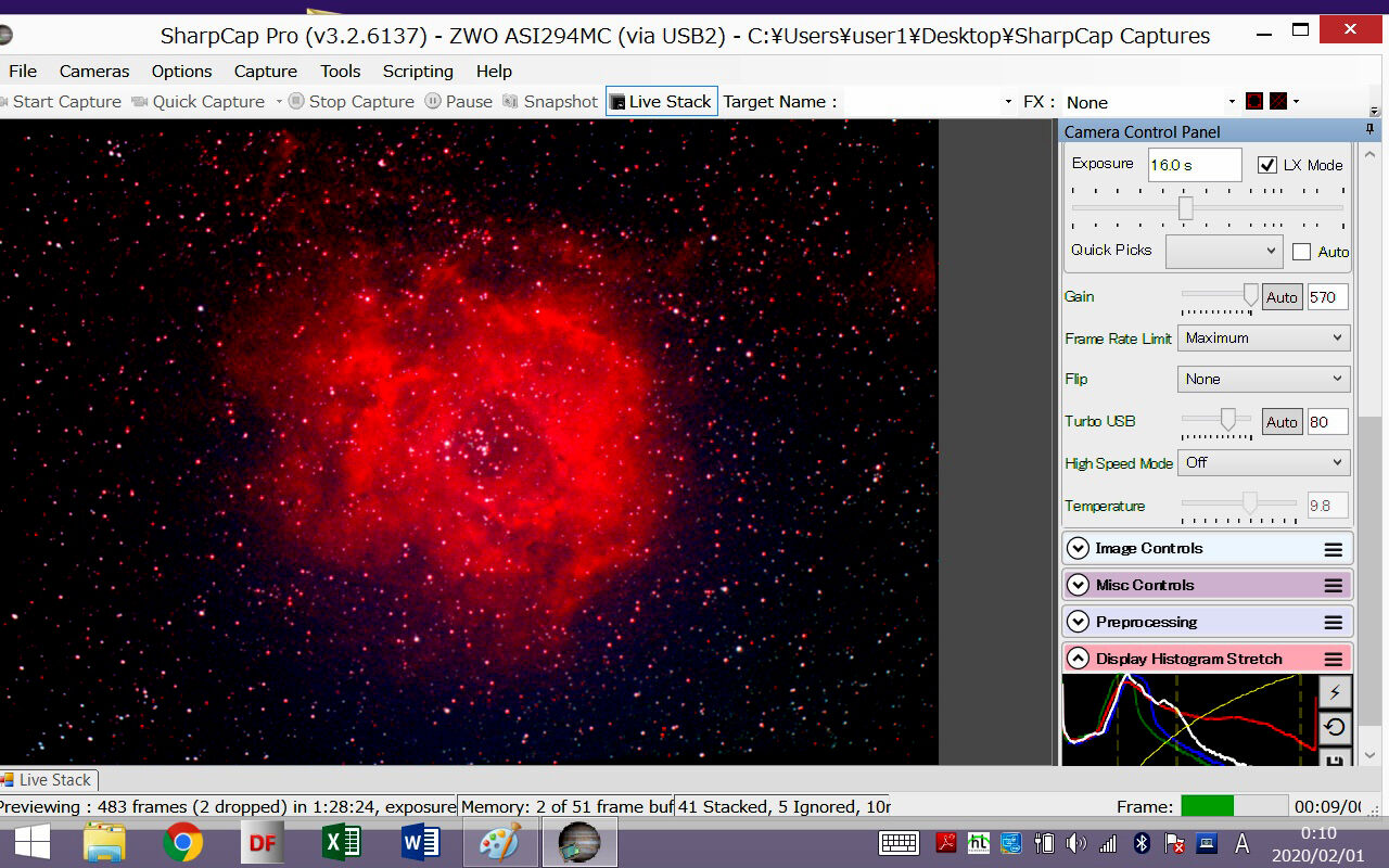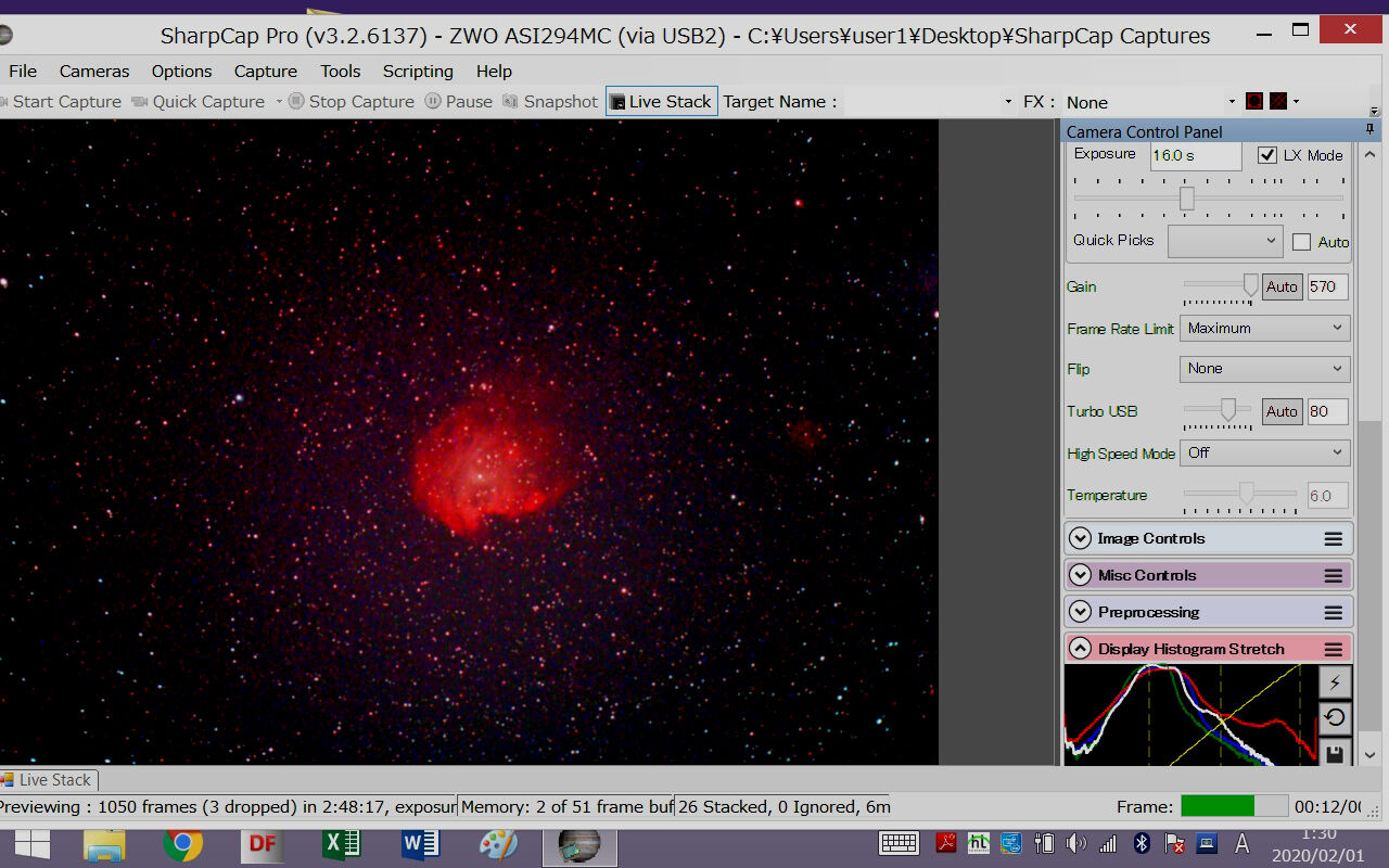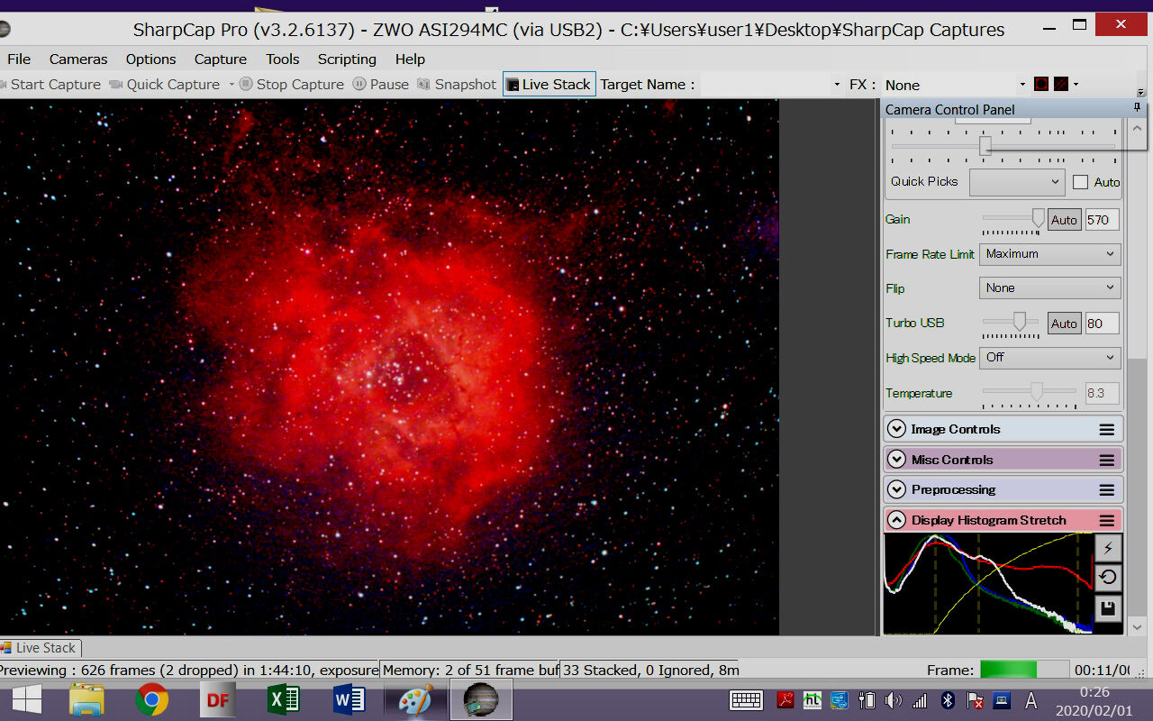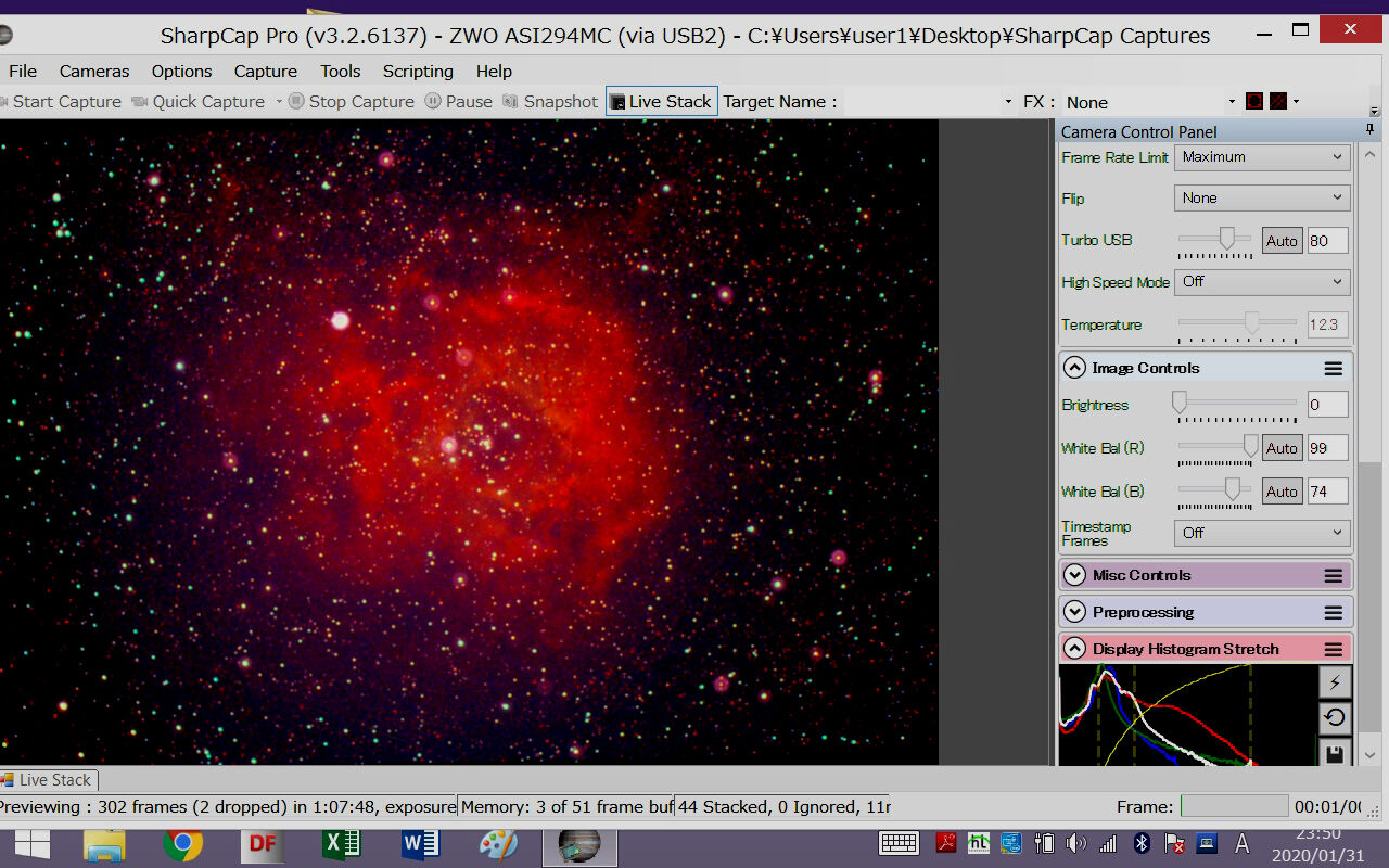 ああ、やっぱりこれがベストですね。カラーバランスも調整しやすく、星像もさらにシャープ。また、諧調が豊かなので、HⅡ領域がよく見えるように画像処理をするときに自由度が高く、いろいろな表現のしかたができます。前回の検証ではここまでの違いは感じなかったのですが、今日はその時よりやや透明度が高いので、STCの潜在能力がより発揮されたということでしょうか。