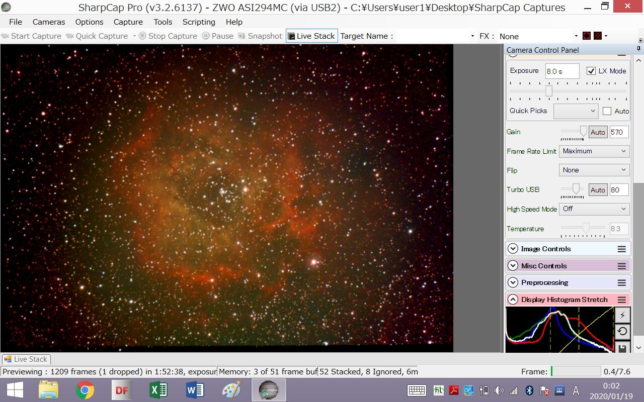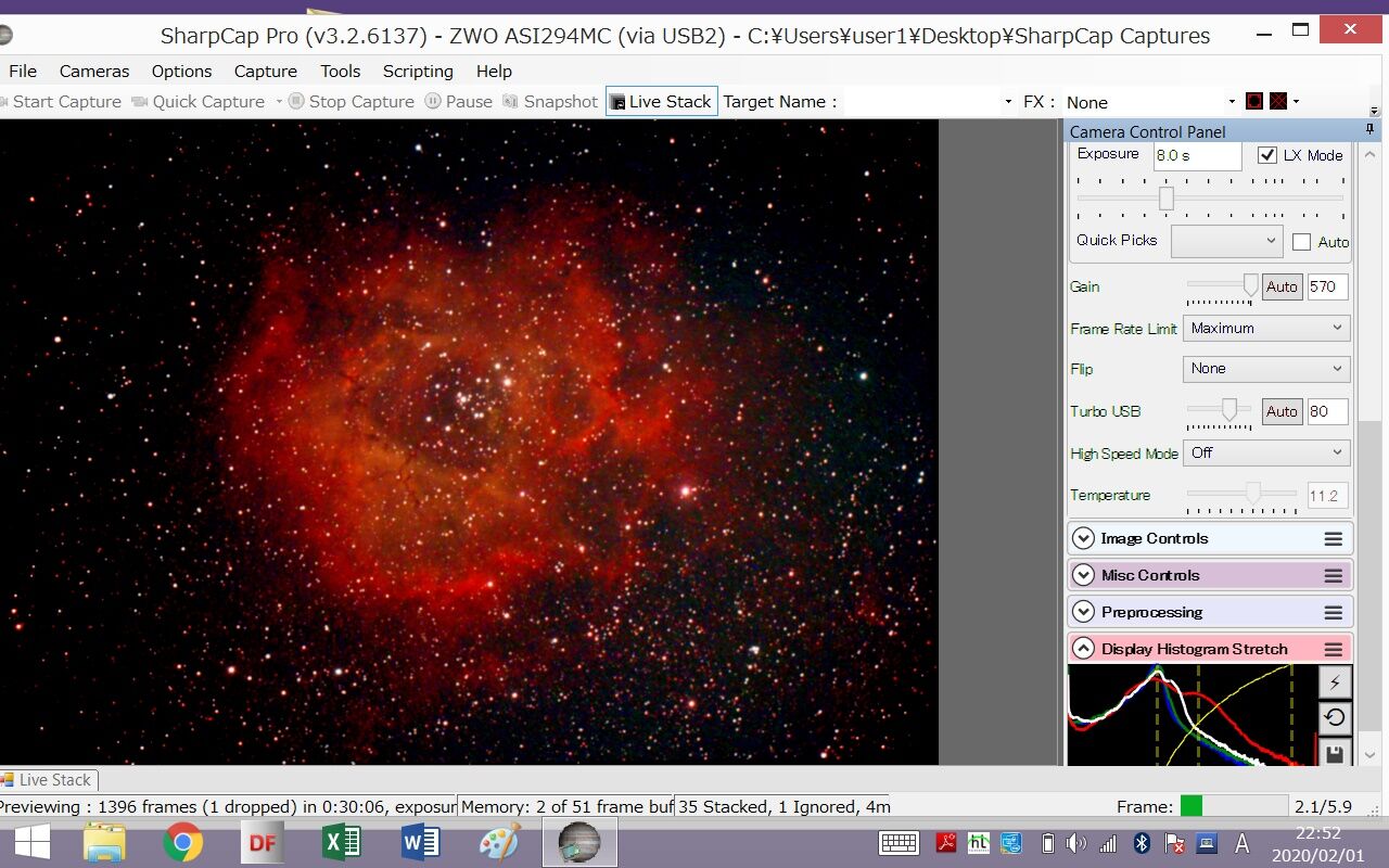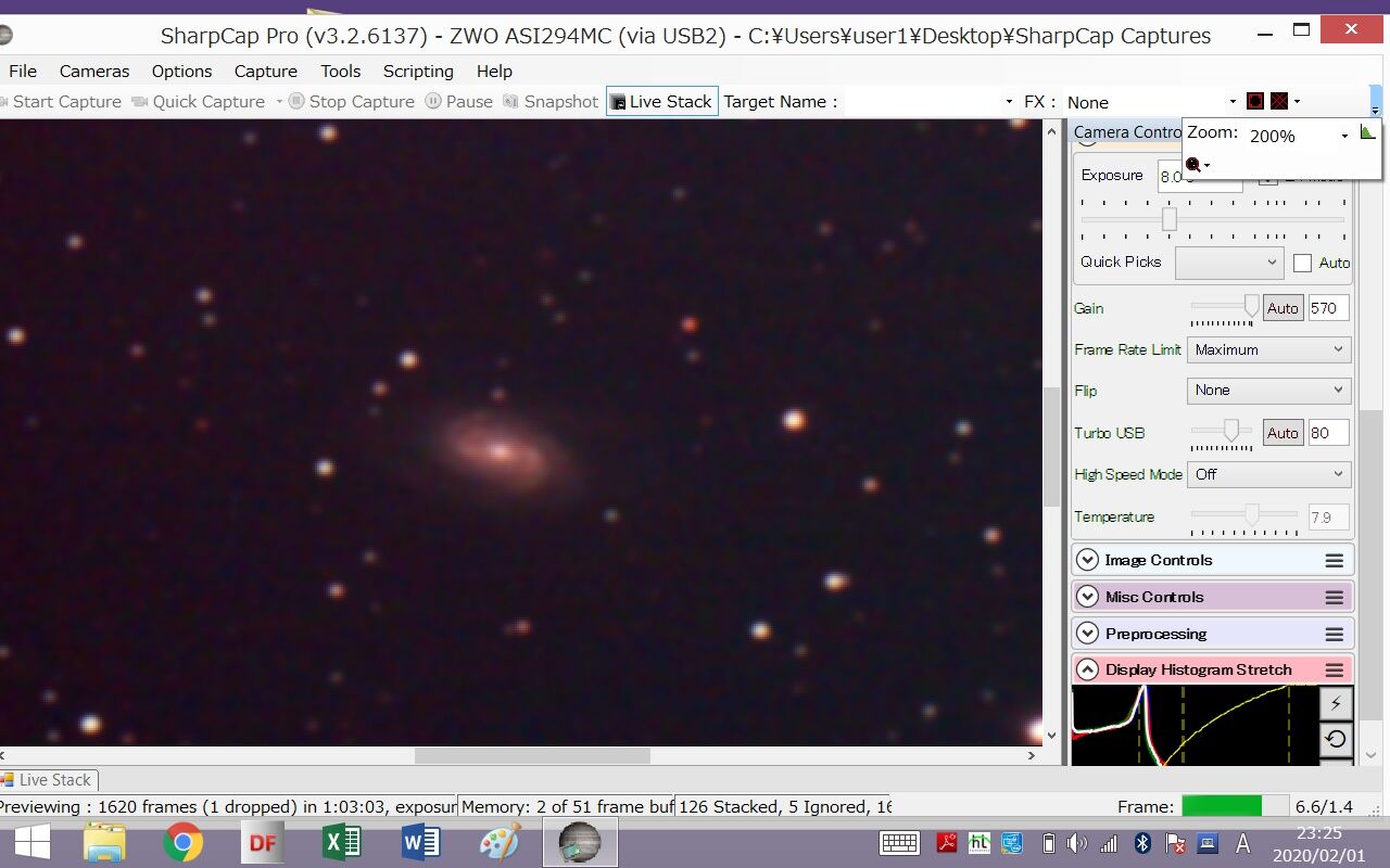 使用した140SS鏡筒の斜鏡と、31.7mmフィルター使用によるイメージサークルの制限で、周辺減光が出てしまっていますが、小宇宙の場合中央拡大するので、周辺部は関係ないし画像処理も楽です。