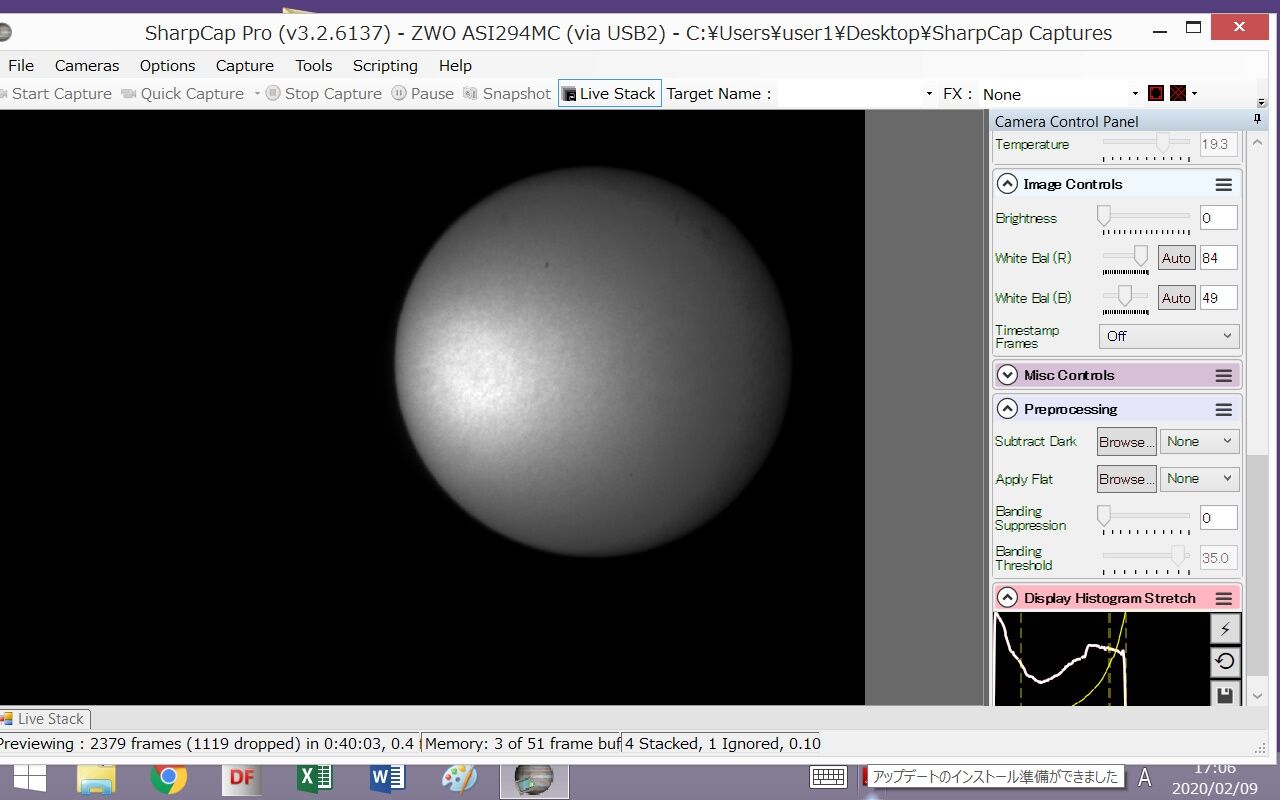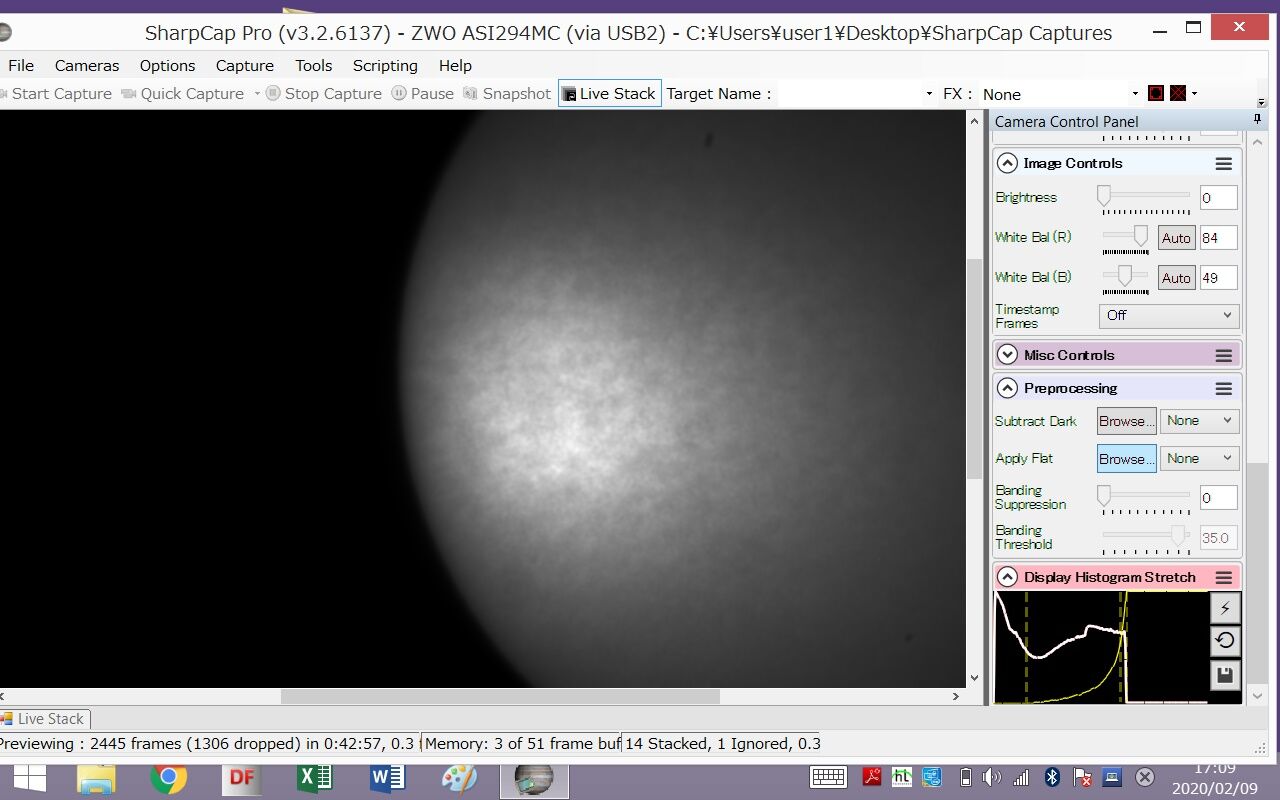 ライブスタックのアラインフレームをオンにしてるとスタックできない(星がないから?)のでオフにして・・・色を消して・・・と。