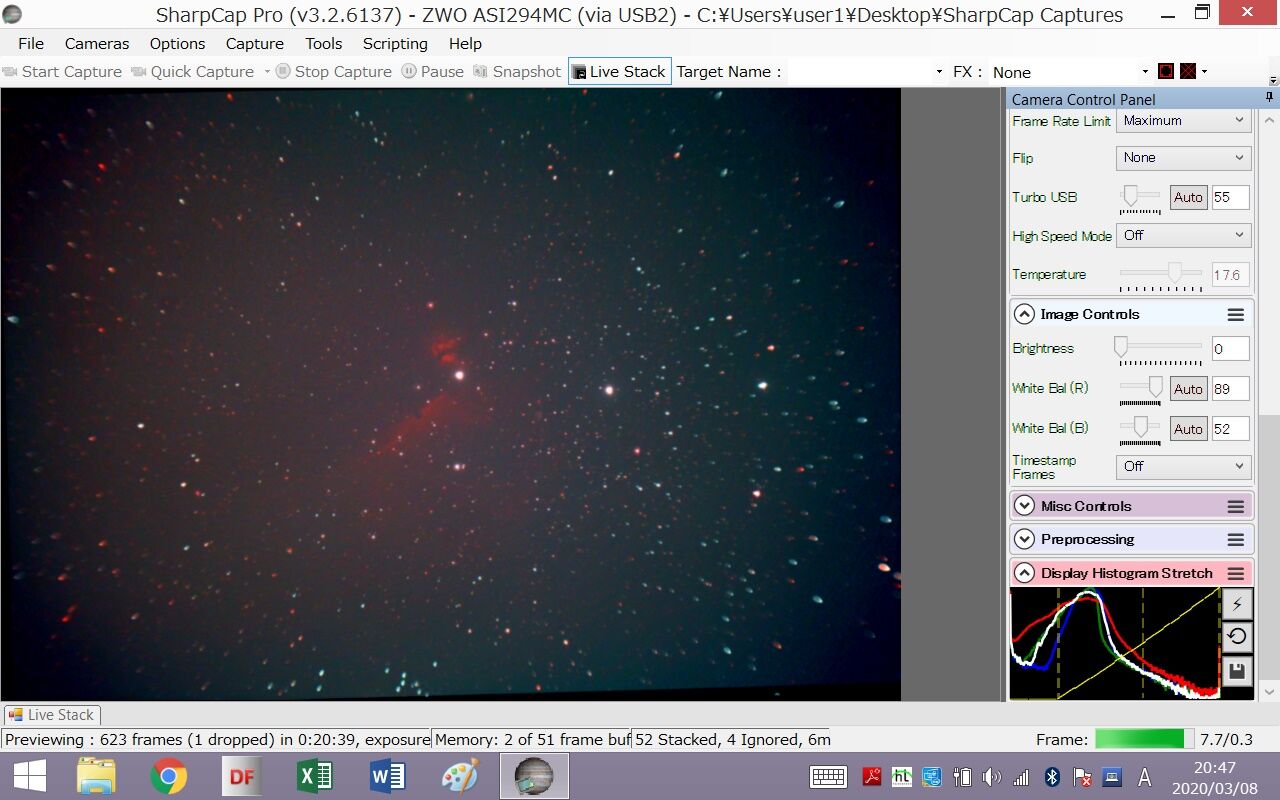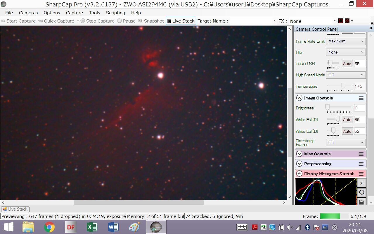 いいところは、中心部がかなりシャープなところです。カメラ用の望遠レンズより明らかに鋭い結像を示しました。これはQBPフィルターもかなり貢献していると思われます。(中央部の拡大↓)