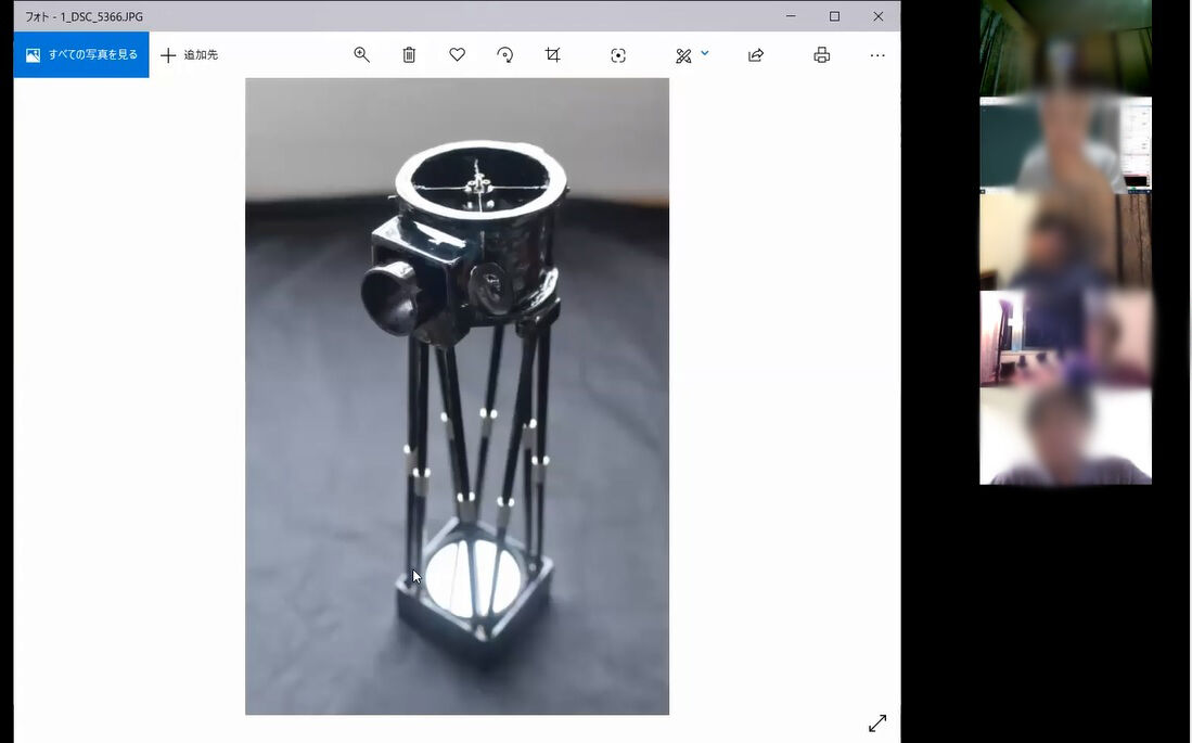 もちろん、ホストだけでなく、参加者の方からの画面も共有できます。これはutoさんに(無茶振りをして)5cmトラス鏡筒望遠鏡を説明してもらっているところ。