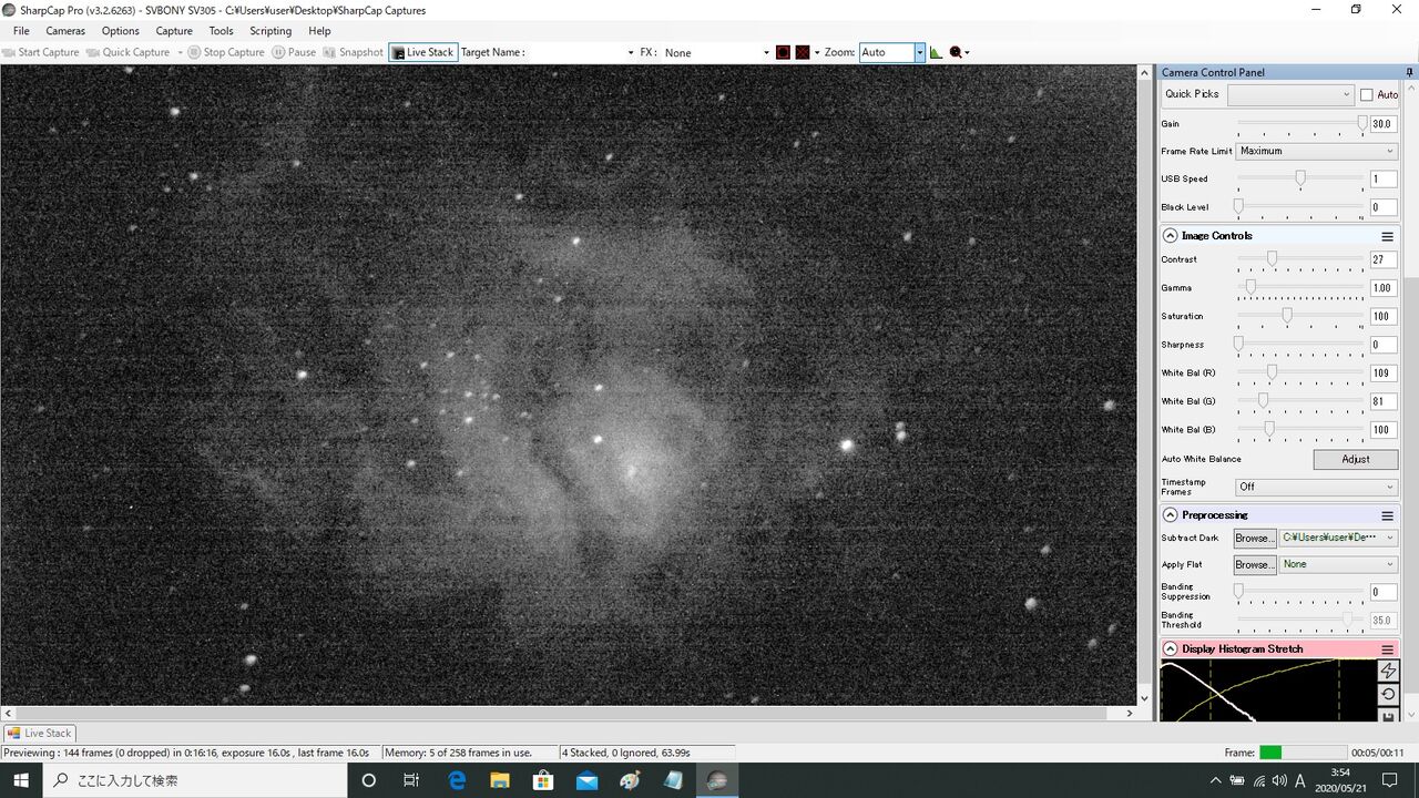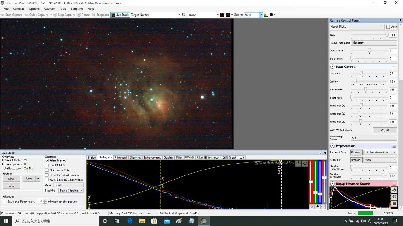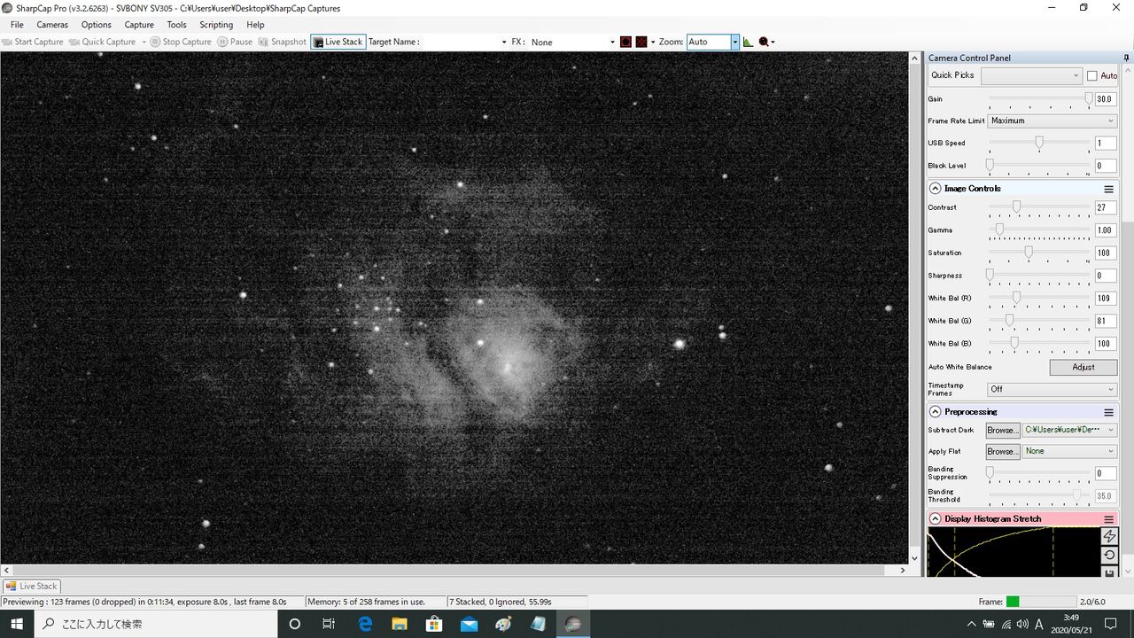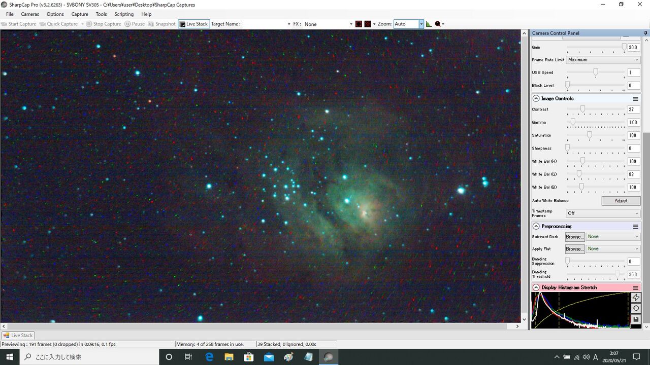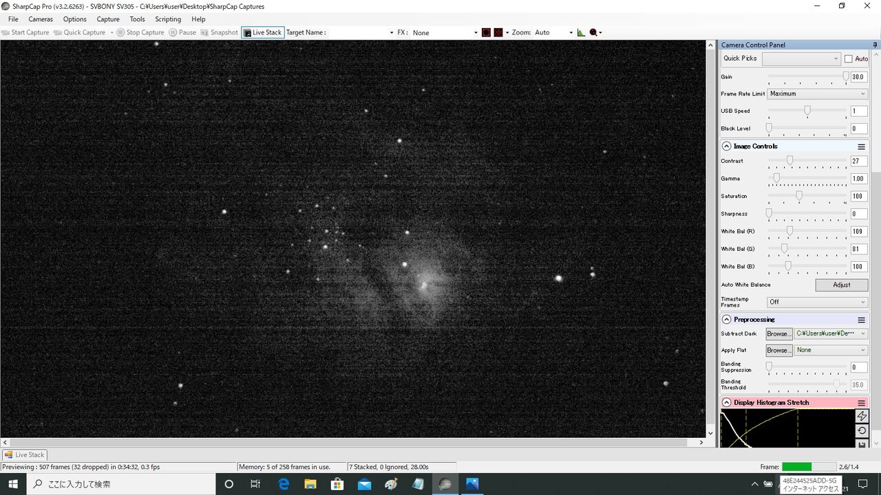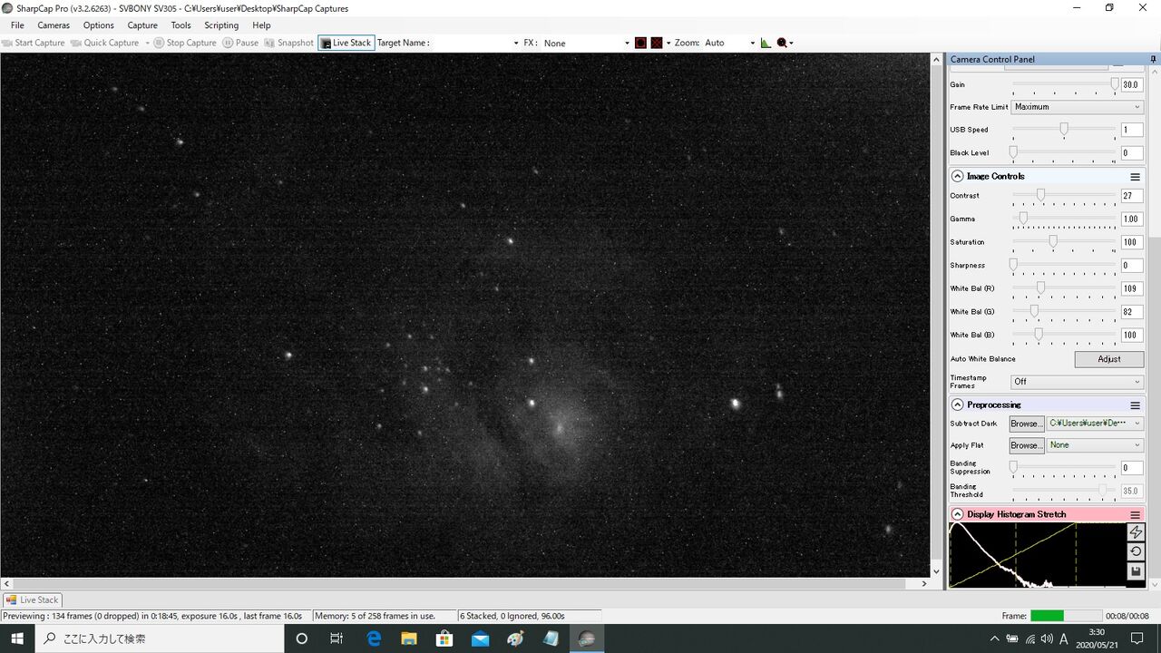 ノーマル機16秒露出。案の状フレーム・アラインができなかったので、アラインを切って7枚スタック。