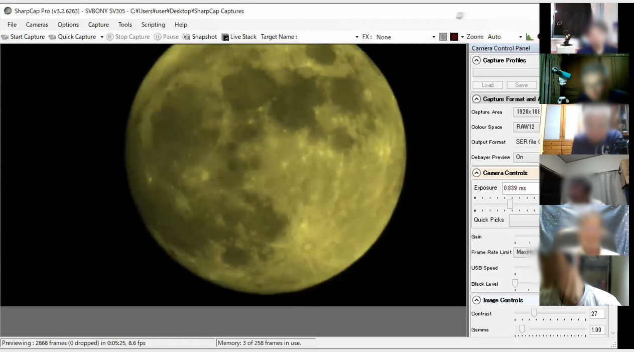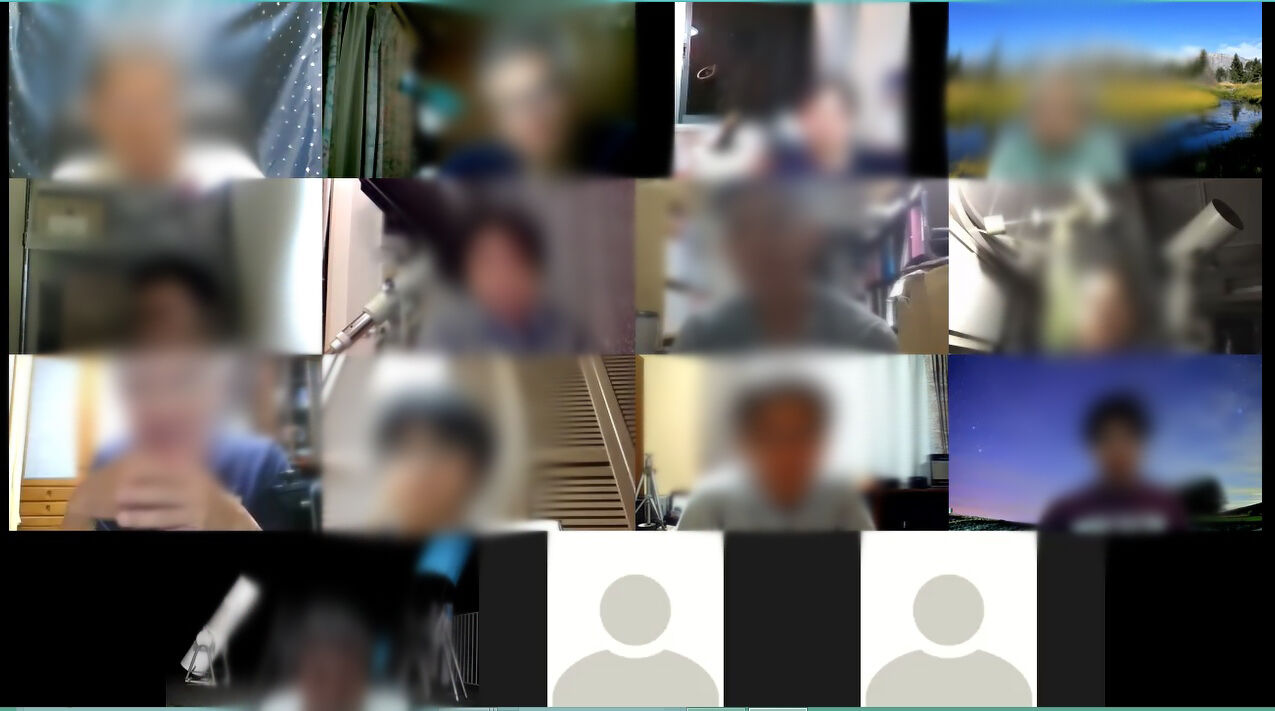 今回、開催を1時間早めて、20:00スタート、40分×3、30分×1で2時間30分にわたる会議となりました。今回は天候の関係で残念ながらNickさんによるナイトビジョンの中継はなし。
