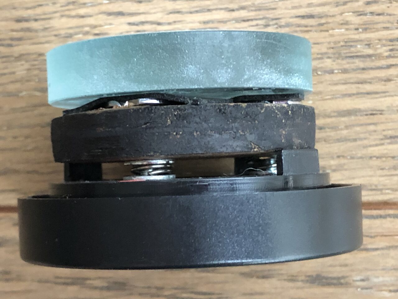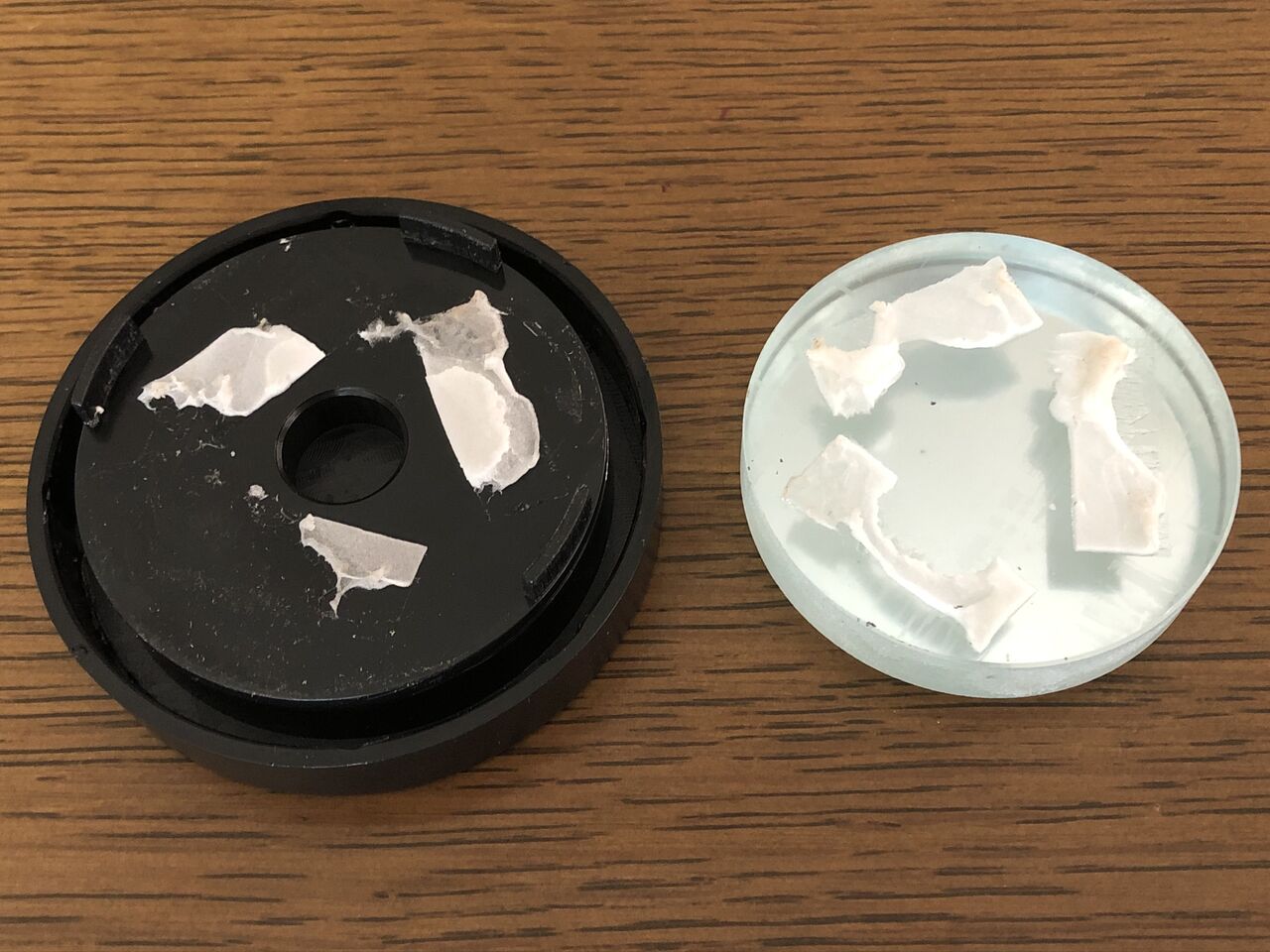 さて、新しい斜鏡はもとのものより1mmほどガラスが厚いので、そのままでは位置が狂ってしまいます。元の斜鏡が1mm厚くらいの両面テープでついていたので、両面テープではなくボンドで直接斜鏡ホルダーに貼り付けてガラスの厚みの差を吸収しました。もちろん偏心取り付け。