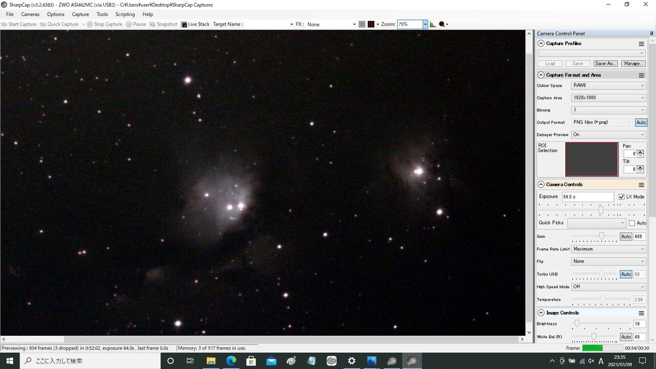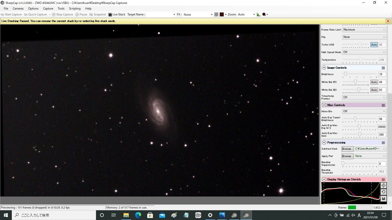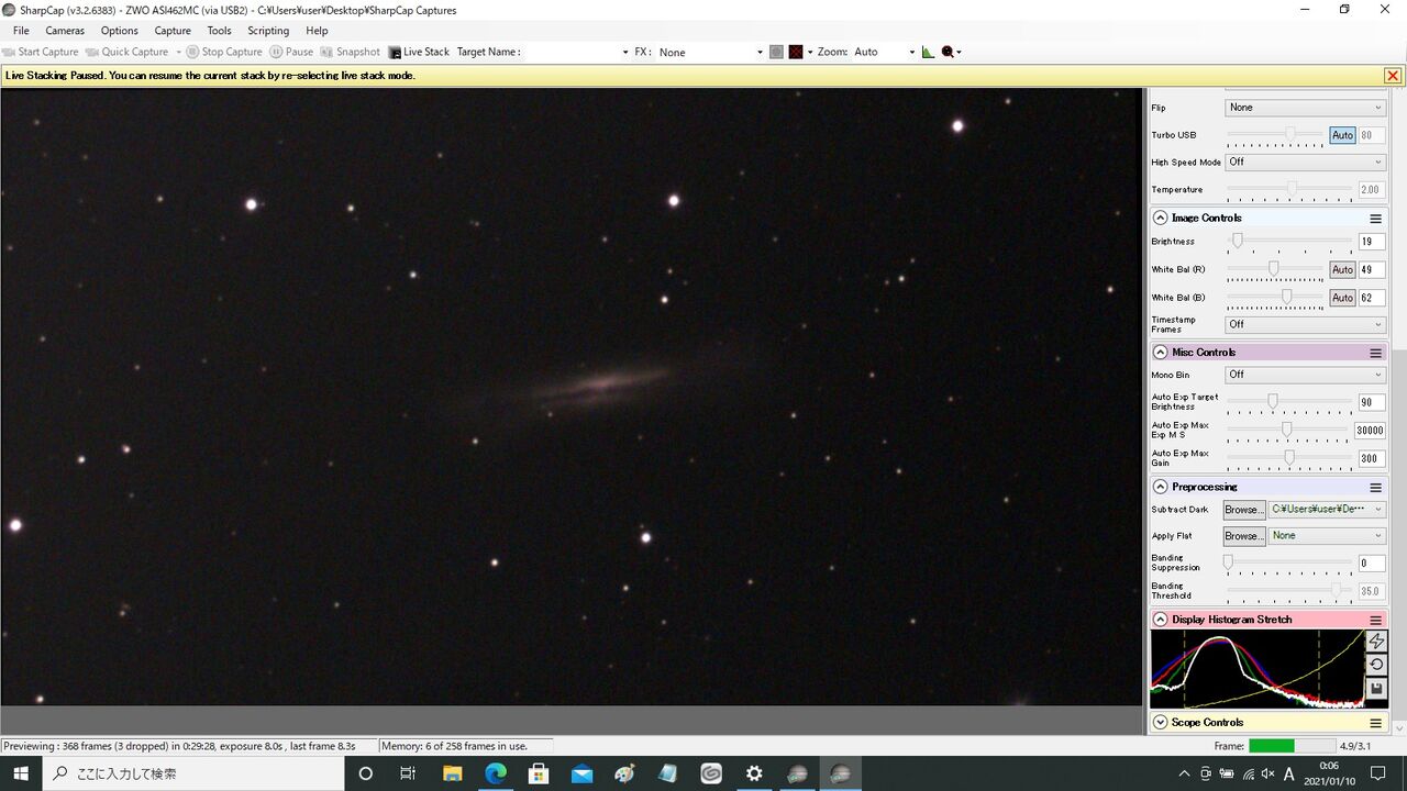 2画面でのSharpCap動作も問題ないようです。